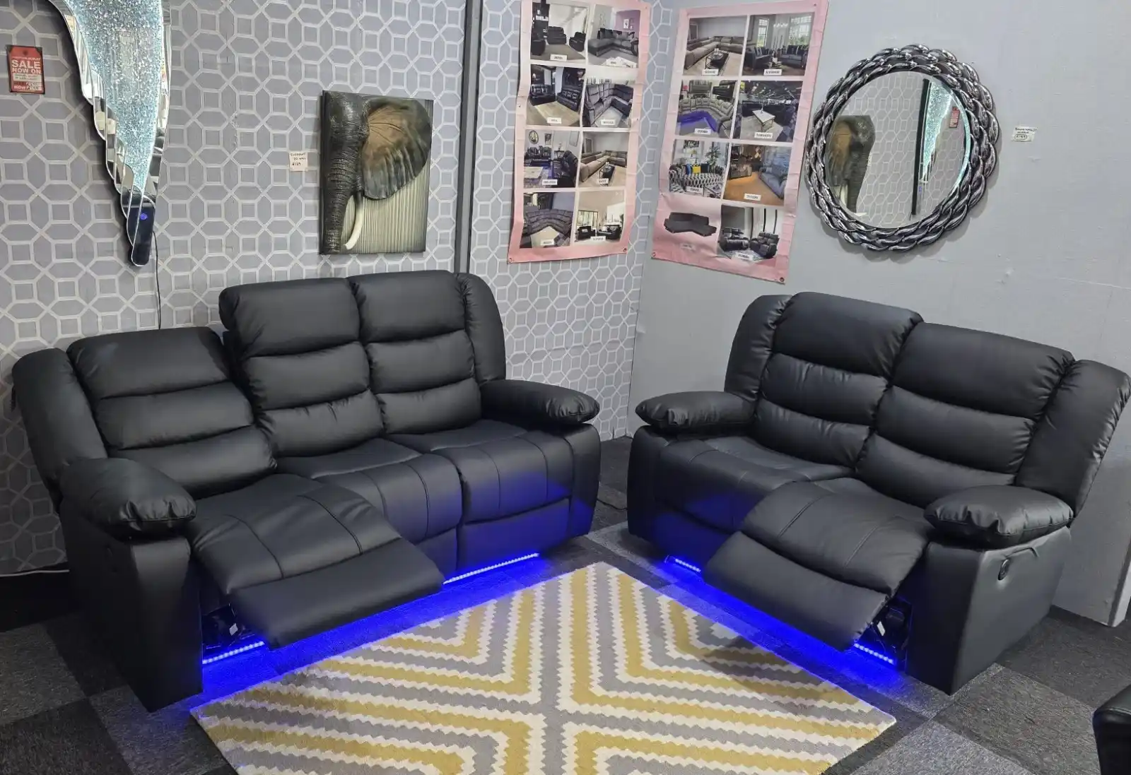 Works great as a full set of sofas with power recliners.