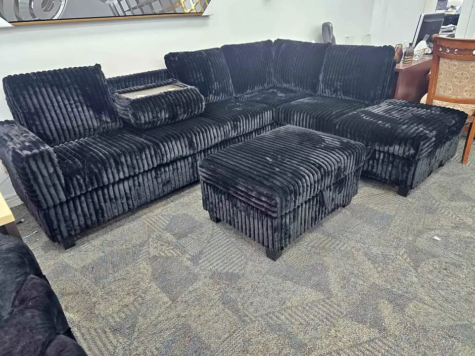 Bring comfort and style together with this beautifully designed corduroy sectional sofa set, perfect for modern Canadian homes. Upholstered in soft, premium corduroy fabric, this L-shaped sectional offers a warm and inviting feel that makes your living room more cozy and welcoming.